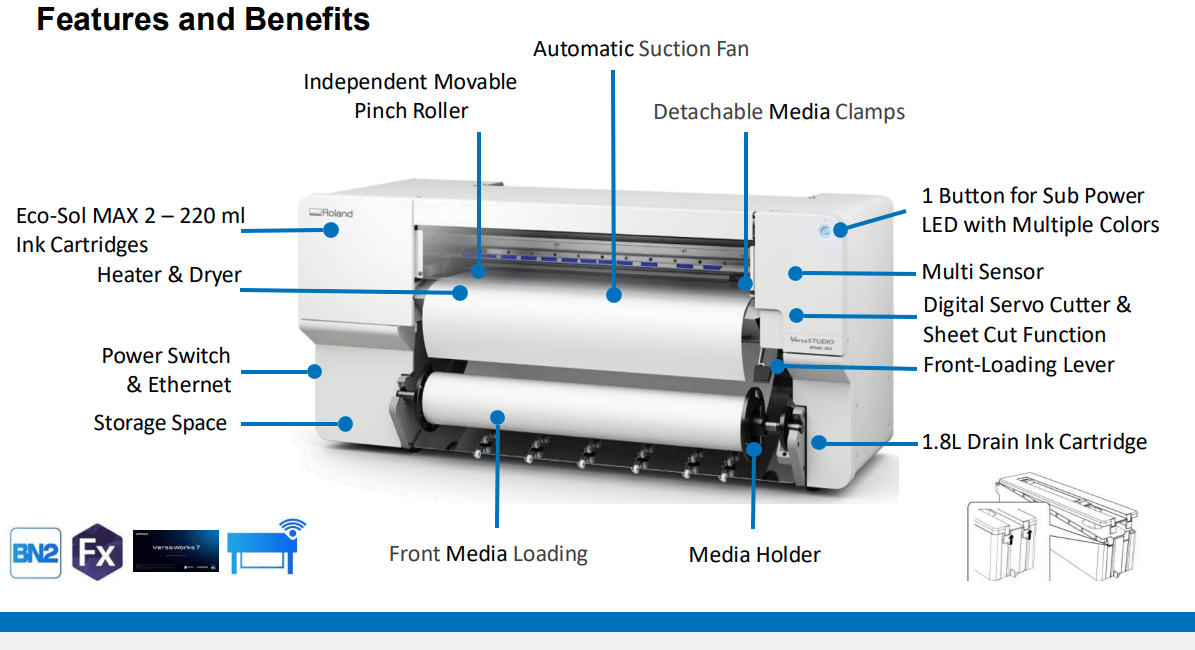 Explore the Roland BN2-30 Eco-Solvent CMYK+W Printer & Cutter