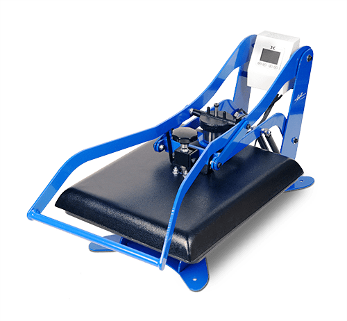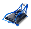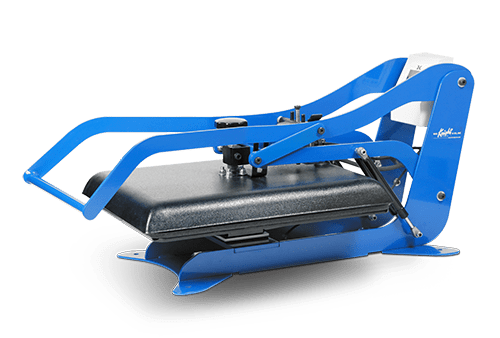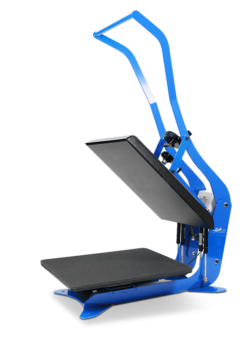 The DK20A 16x20 clamshell press opens for full access to the lower bottom table. It is important to note that the back of the heat platen raises above and away from the bottom table, providing better access than other clamshell presses. The frame support allows operators to slide shirts over the table with complete drape space around and underneath the loading area. Interchangeable bottom tables for smaller pressing areas are available. This press is ideal for environments with space limitations, and for users who need more portability and mobility than the over-weight swingaway presses.