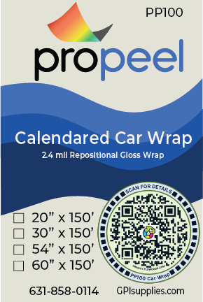 PP100 ProPeel 2.4 mil CALENDARED VEHICLE WRAP Gloss White Air Egress Printable Vinyl