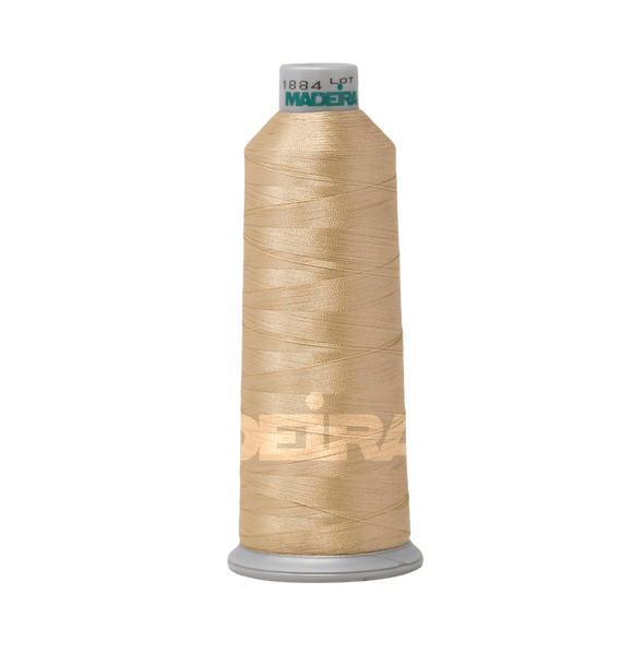 Madeira's Burly Wood 1884 100% polyester machine embroidery thread, Polyneon, is constructed of a specifically developed raw material, eliminating looping, puckering and virtually all thread breaks. Suitable for almost any application, Polyneon's unique formula makes this thread extremely durable and smooth running for high-speed embroidery machines. Vibrant colors are glossy, as well as resistant to chlorine bleach. Choose Madeira for the highest quality embroidery thread available.