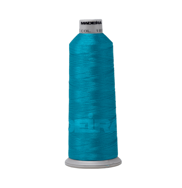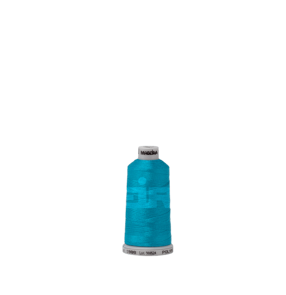 Madeira's Deep Sky Blue 1888 100% polyester machine embroidery thread, Polyneon, is constructed of a specifically developed raw material, eliminating looping, puckering and virtually all thread breaks. Suitable for almost any application, Polyneon's unique formula makes this thread extremely durable and smooth running for high-speed embroidery machines. Vibrant colors are glossy, as well as resistant to chlorine bleach. Choose Madeira for the highest quality embroidery thread available.